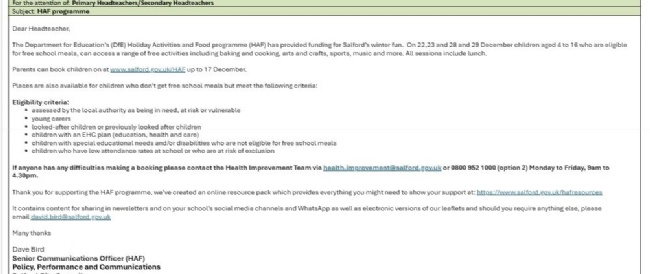 To find out more follow the link: www.salford.gov.uk/HAF