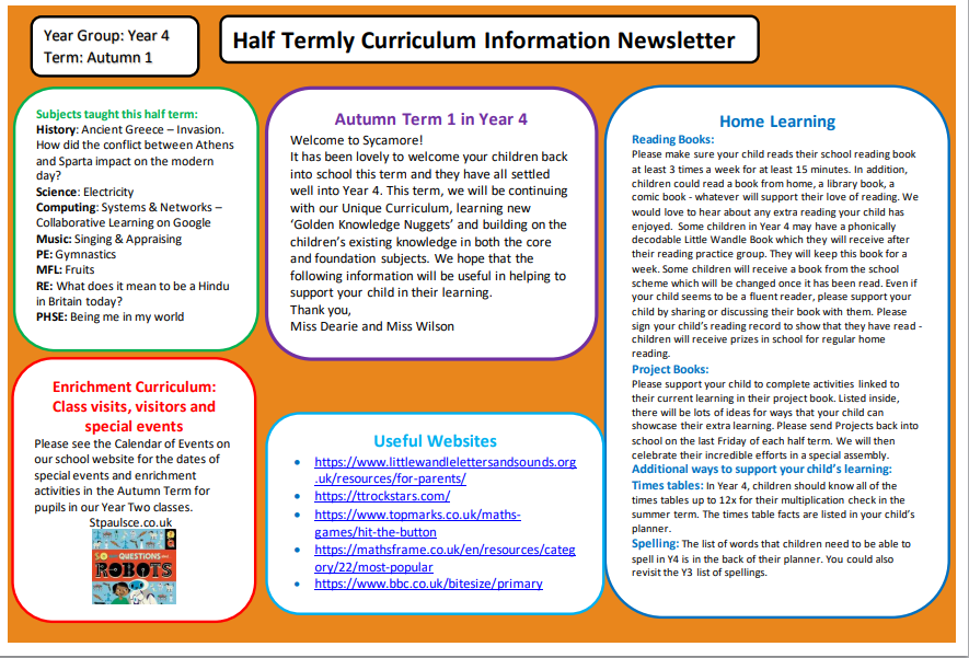 Year 4 Sycamore Curriculum