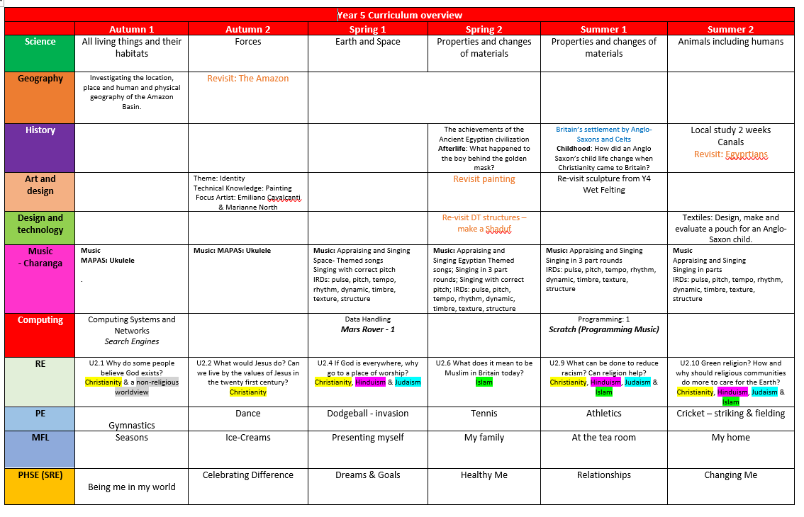 Year 5 Curriculum Overview