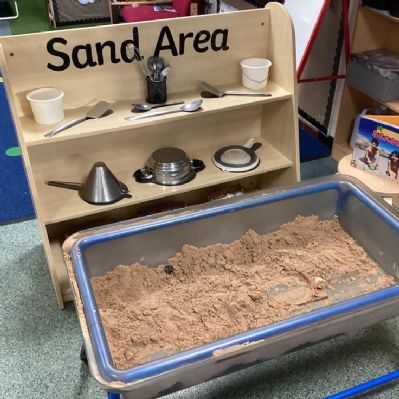 Most of the time your child will be learning all seven areas of learning together, in a fairly jumbled way. So if they spend lots of time in the sand area there's no need for concern! They may well be covering all kinds of important learning: working with different materials; finding out about shape, quantity and volume; creating imaginative worlds; felling different textures; and even developing motor skills and strength for writing!