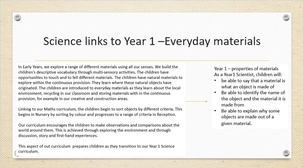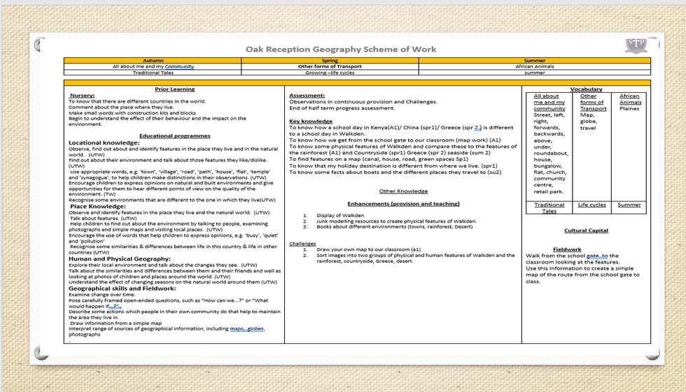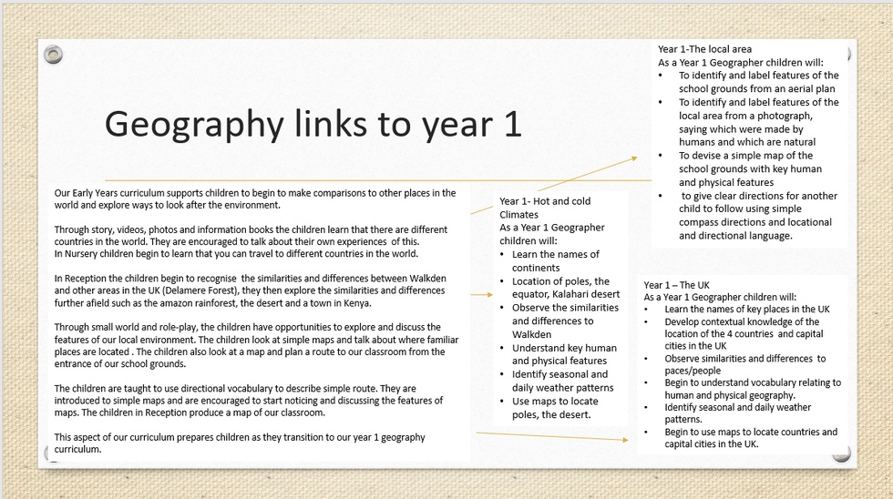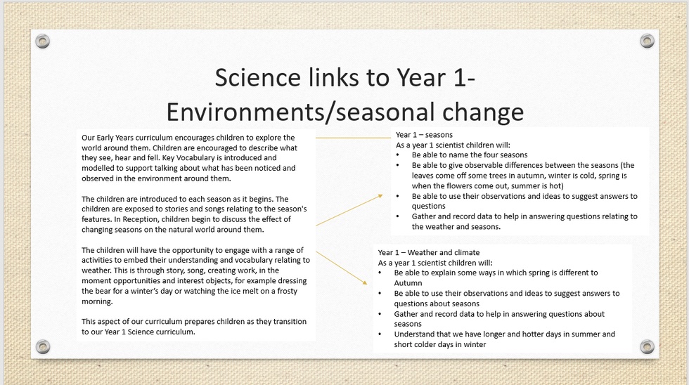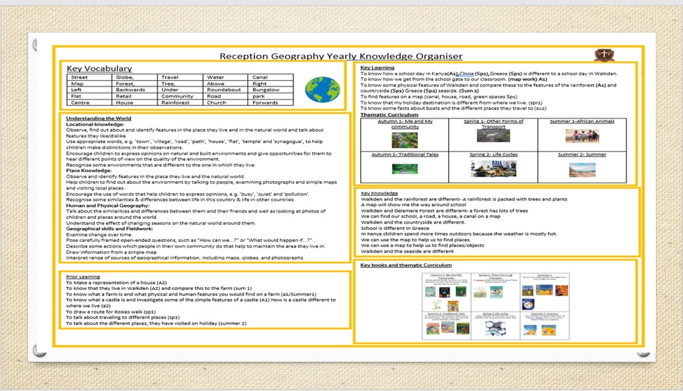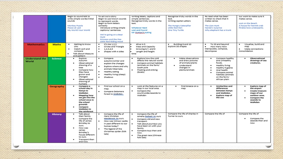 Understanding the world involves guiding children to make sense of their physical world and their community. The frequency and range of children's personal experiences increases their knowledge and sense of the world around them- from visiting parks, libraries and museums to meeting important members of society such as police officers, nurses and firefighters. In addition, listening to a broad selection of stories, non-fiction, rhymes and poems will foster their understanding of our culturally, socially, technologically and ecologically diverse world. As well as building important knowledge, this extends their familiarity with words that support understanding across domains. Enriching and widening children's vocabulary will support later reading comprehension.