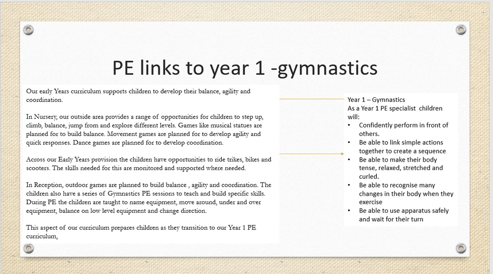 Physical activity is vital in children's al round development, enabling them to pursue happy, healthy and active lives. Gross and fine motor experiences develop incrementally throughout early childhood, starting with sensory explorations and the development of a child's strength, co-ordination and positional awareness through tummy time, crawling and play movement with both objects and adults. By creating games and providing opportunities for play both indoors and outdoors, adults can support children to develop their core strength, stability, balance, spatial awareness, co-ordination and agility. Gross motor skills provide the foundation for developing healthy bodies and social and emotional well-being. Fine motor control and precision helps with hand eye co-ordination which is later linked to Early Literacy. Repeated and varied opportunities t explore and play with small world activities, puzzles, arts and crafts and the practise of using small world tools, with feedback and support from adults, allow children to develop proficiency, control and confidence.