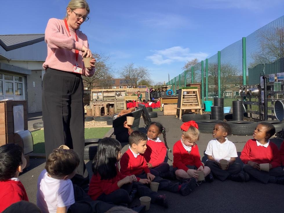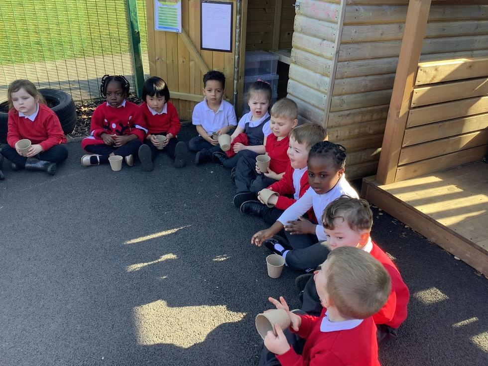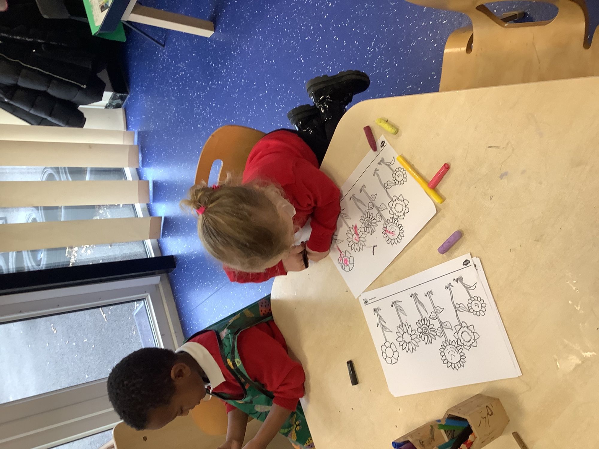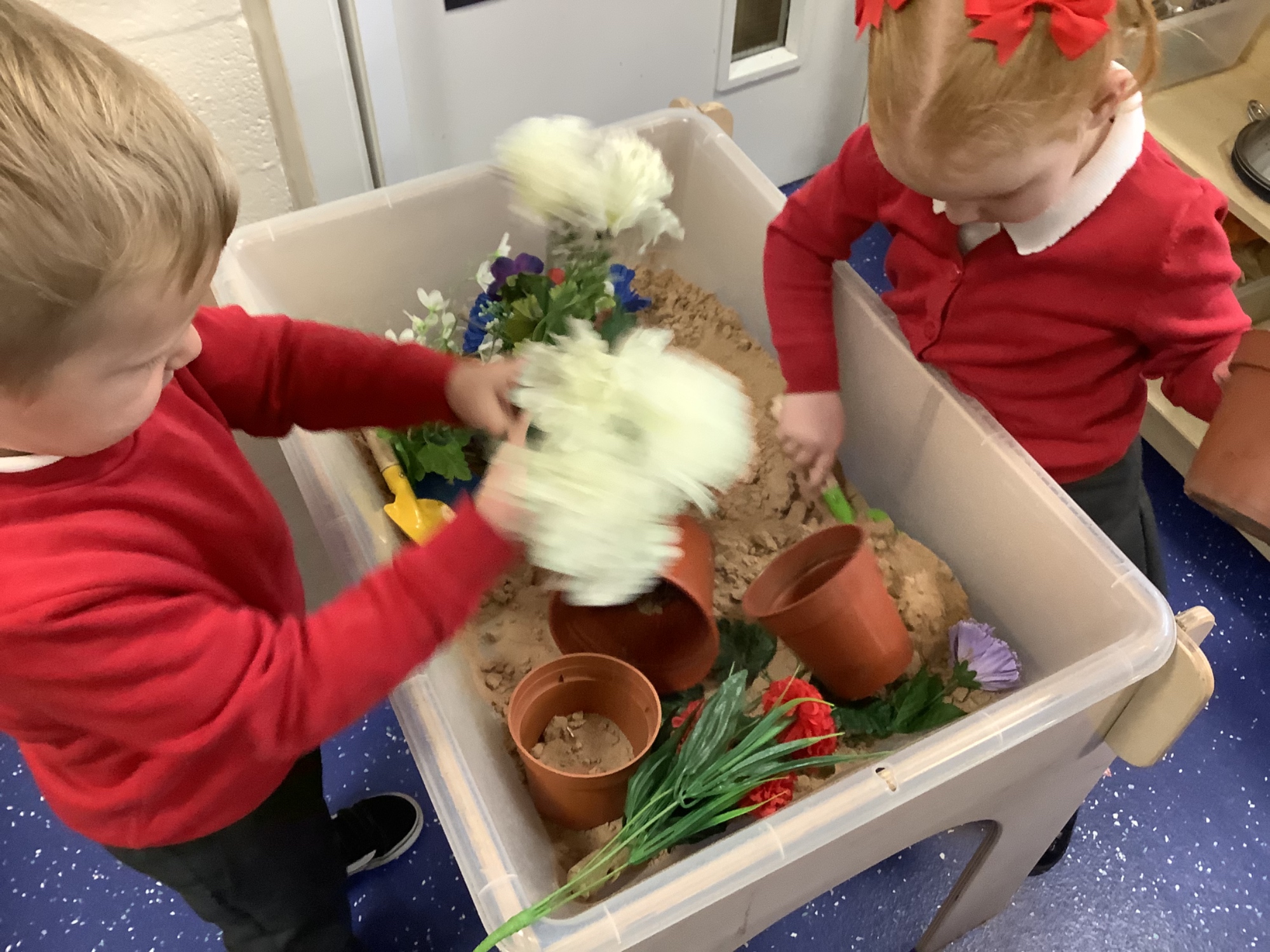 This week we have been learning about and engaging with activities relating to the nursery rhyme 'Mary, Mary quite contrary.' We have potted plants, printed flowers using cardboard tubes, coloured flowers and made playdough flowers. We also went on a flower hunt in the school grounds.