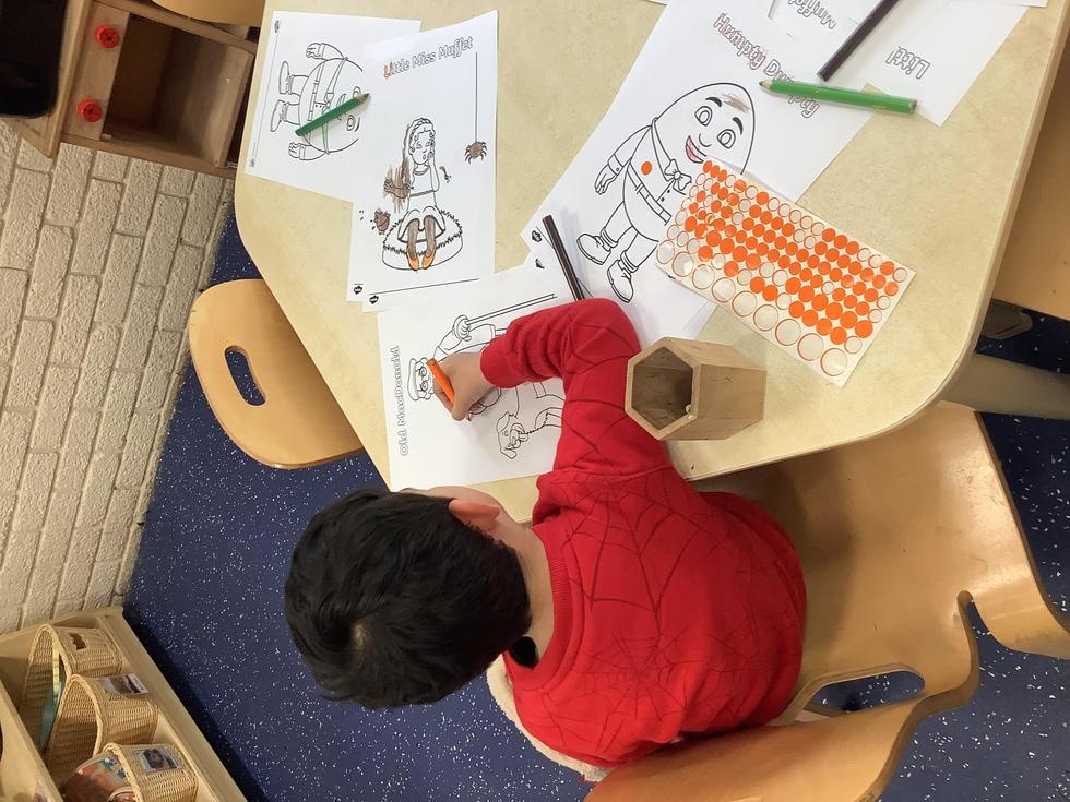 This week we have been learning all about the nursery rhyme. We have been playing doctors, washing dolls and making Miss Polly in the playdough area.