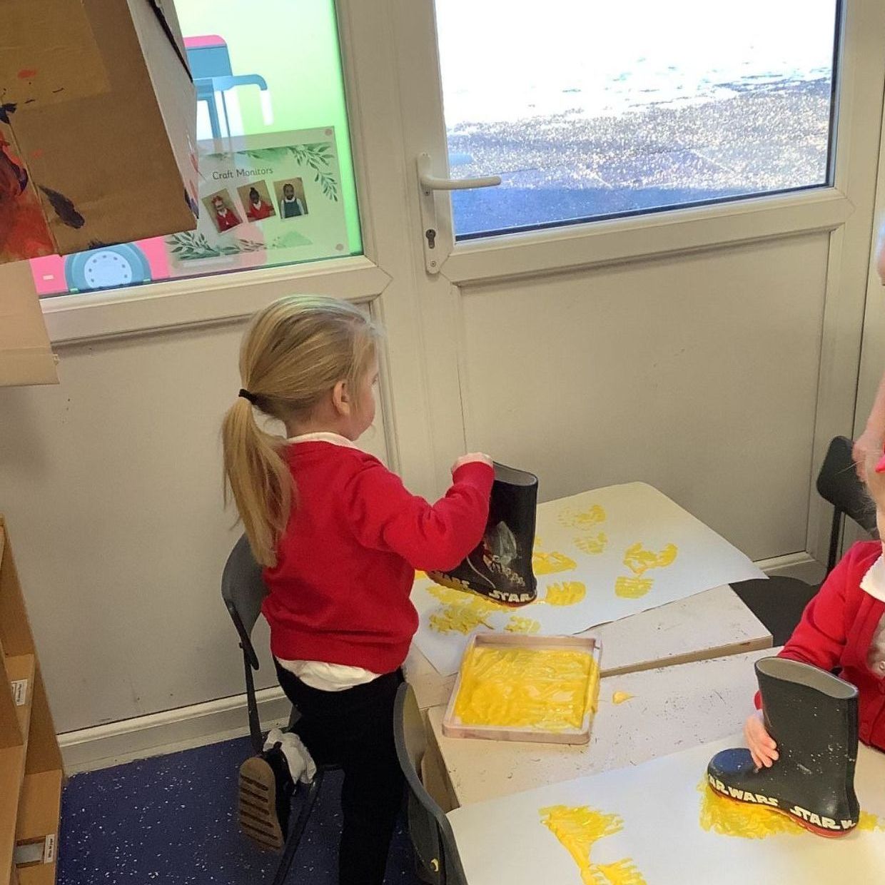 We have been busy this week. We have started our new 'transport' topic with the book 'Rosie's Walk'. We have been on a walk around school, made footprints, retold the story and developed our positional language in maths. We've also continued to work on our turn taking. What a busy first week back!