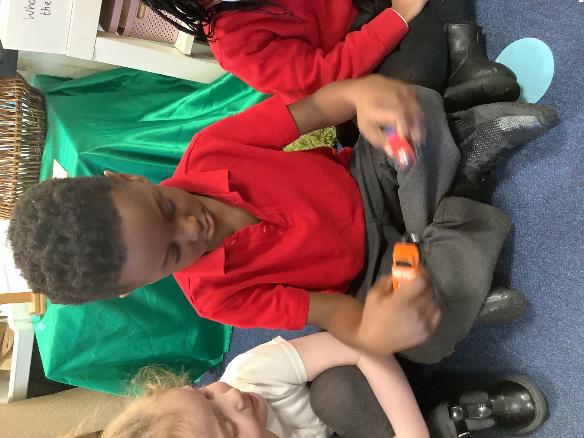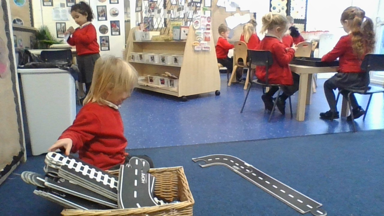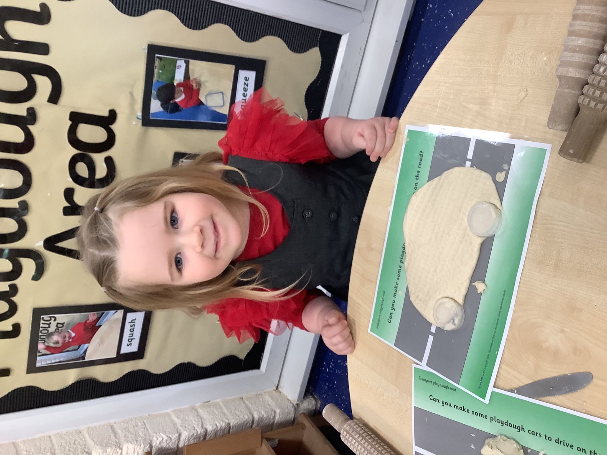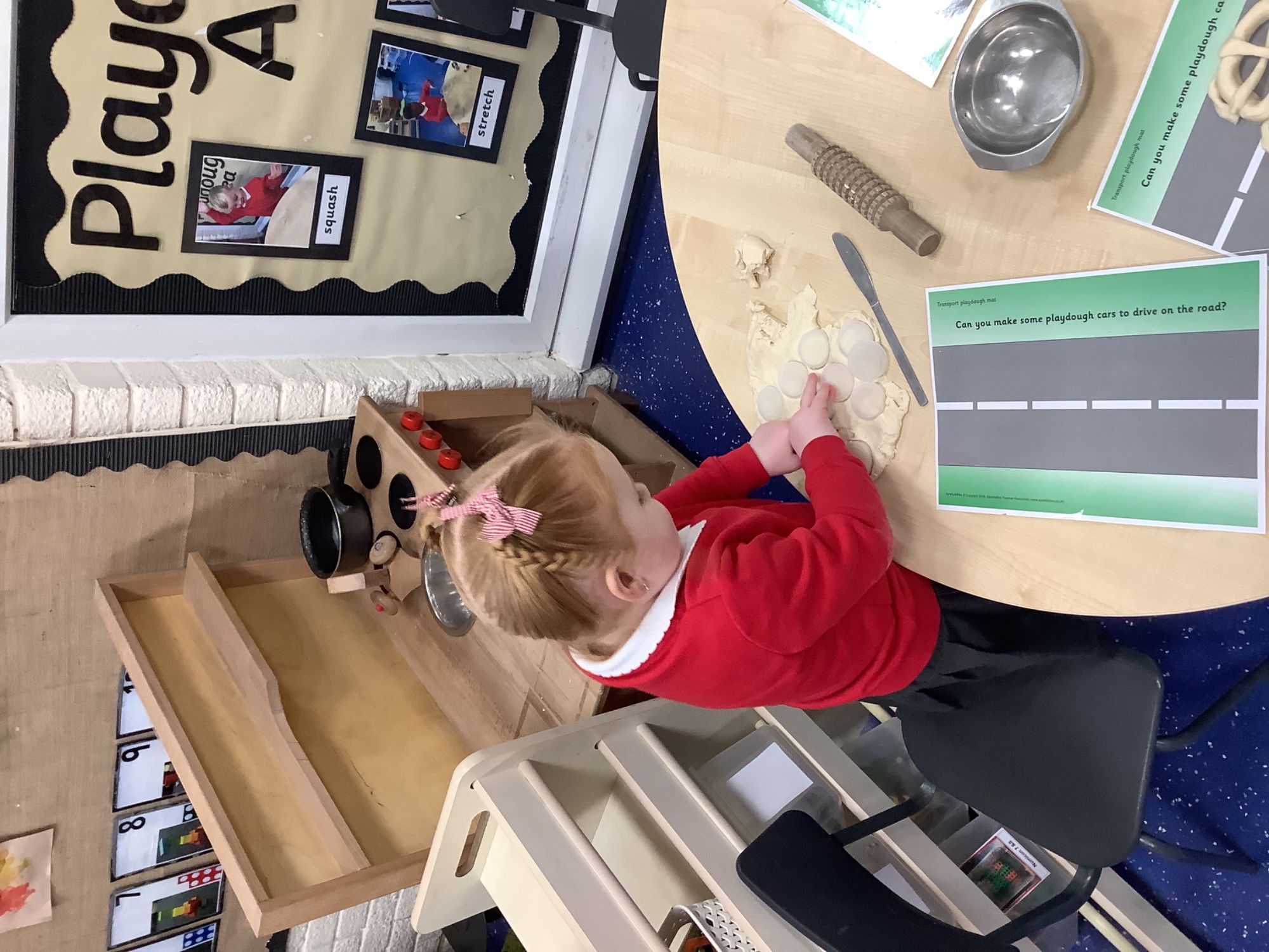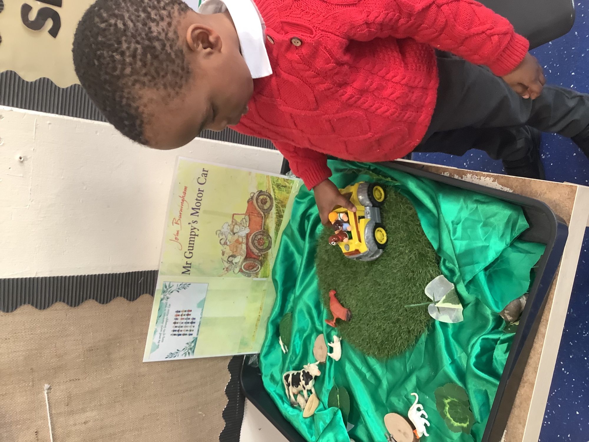 This week we have been reading the story 'Mr Gumpy's Motor Car'. We have been learning about car journeys and talking about the car journeys we have been on. We looked at a map and a globe to see the countries we could drive to. In continuous provision, we have washed cars, made tyre tracks in paint and sand, acted out the story using our small world characters, made cars in the playdough area and built garages in the construction area. We have also been learning all about numbers 1–3 and showing these quantities using our fingers.