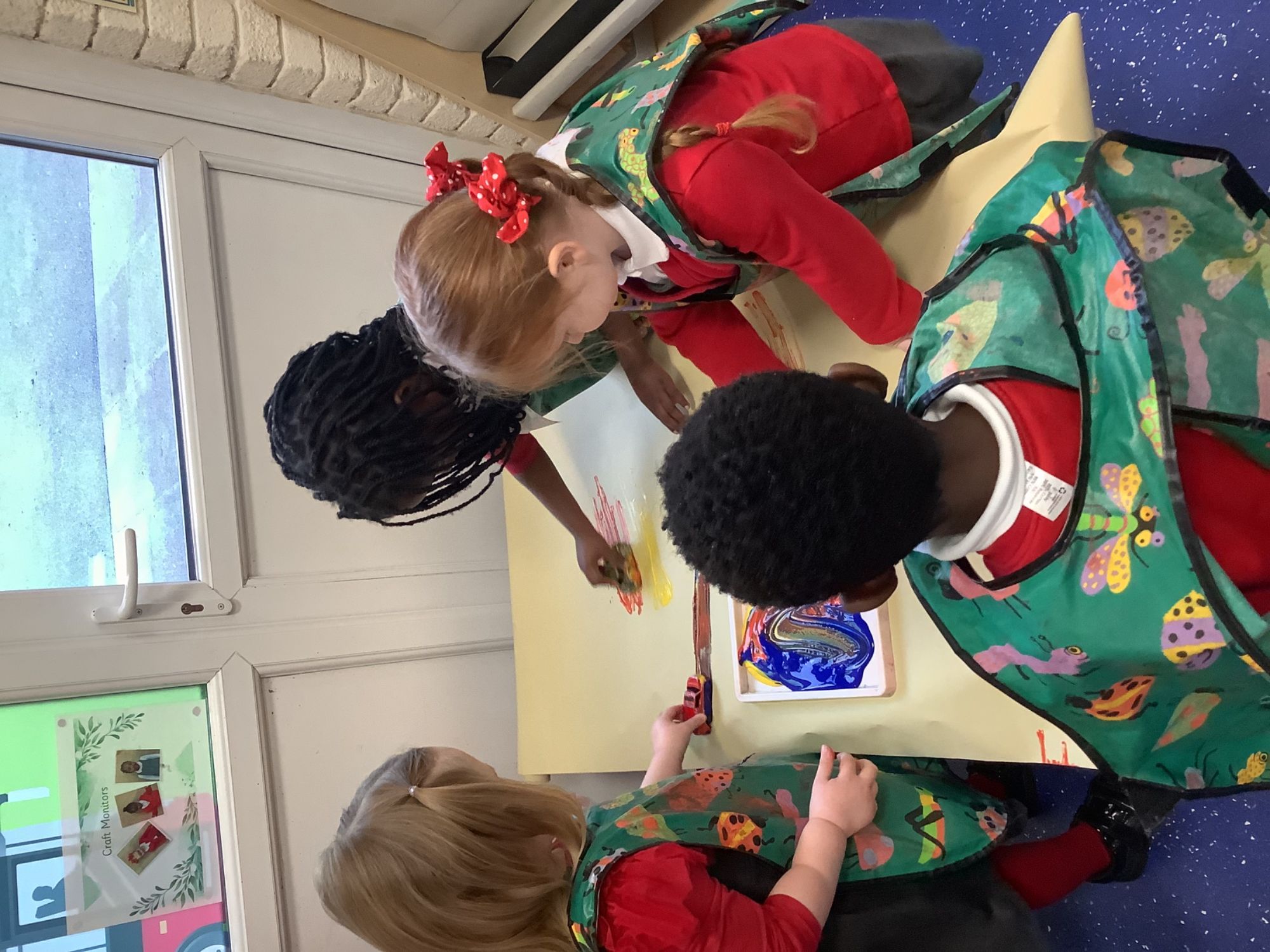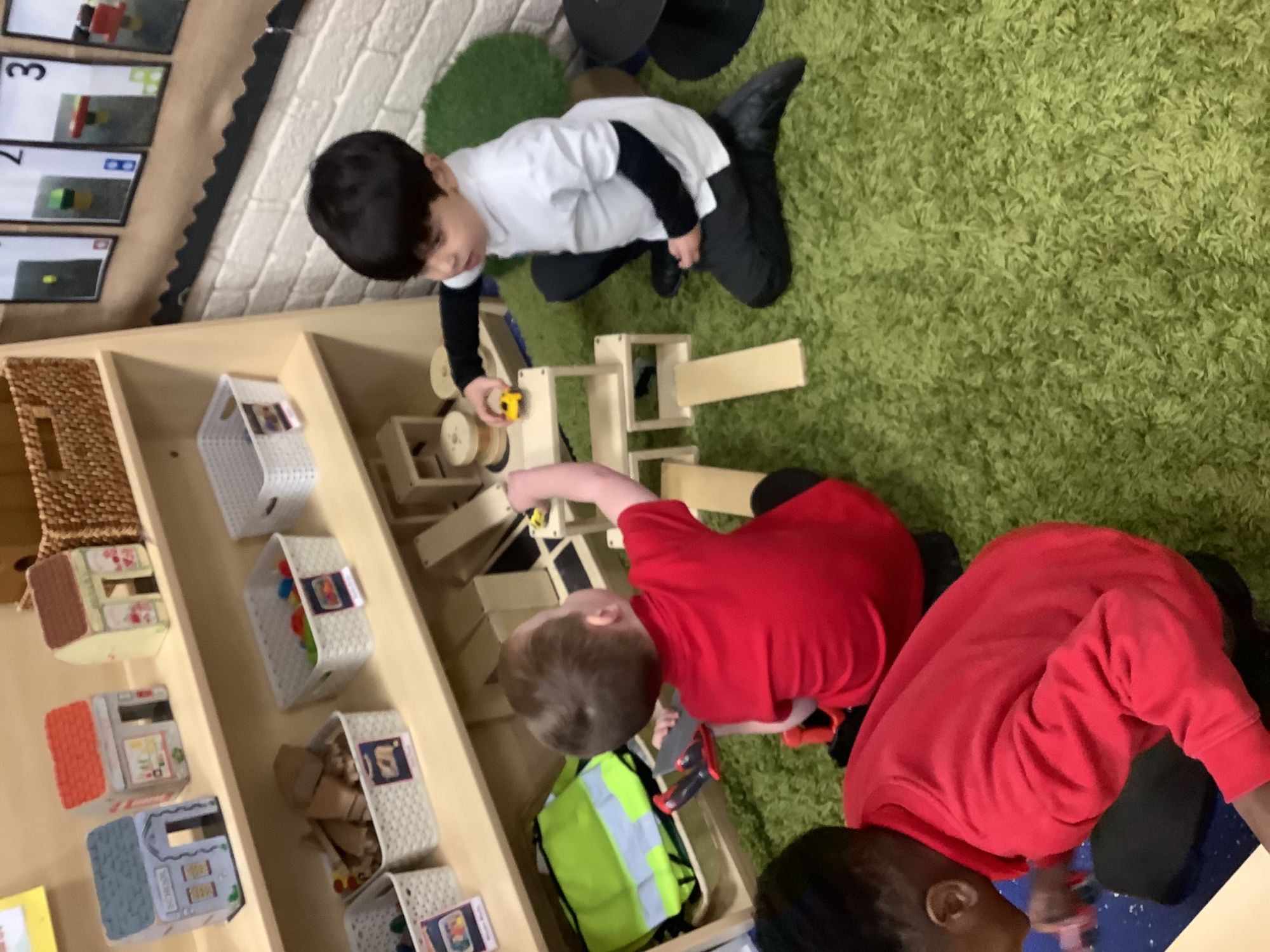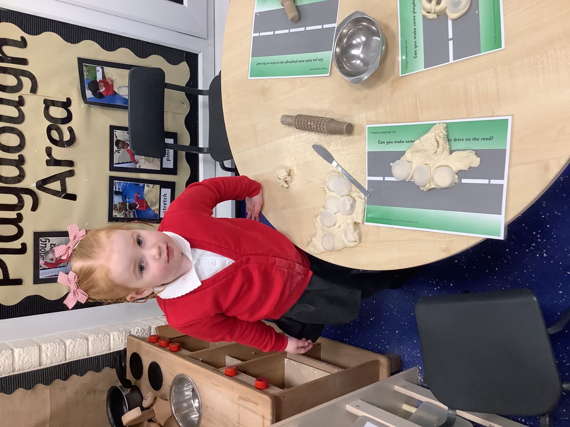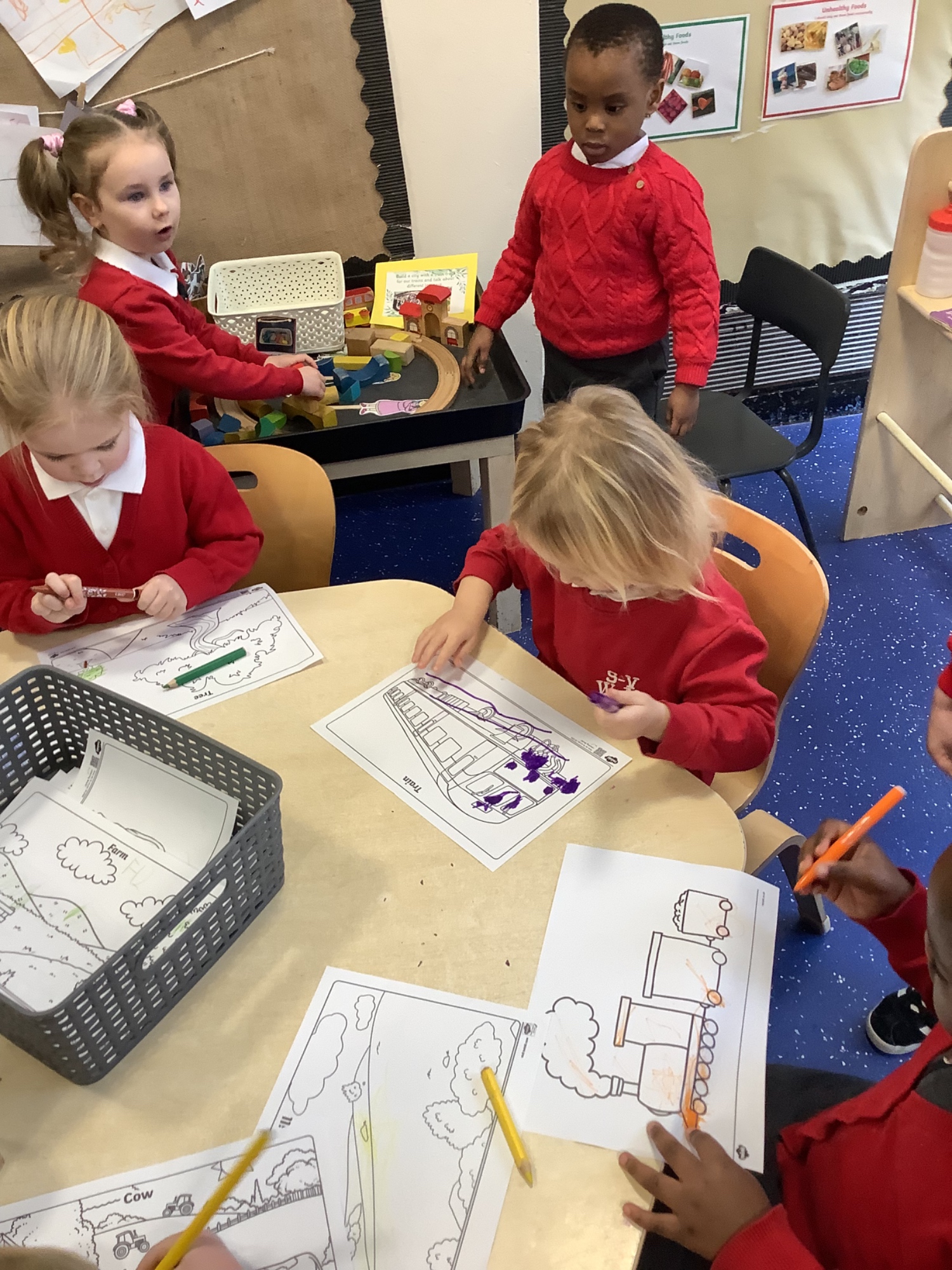 This week we have been reading the story 'Mr Gumpy's Motor Car'. We have been learning about car journeys and talking about the car journeys we have been on. We looked at a map and a globe to see the countries we could drive to. In continuous provision, we have washed cars, made tyre tracks in paint and sand, acted out the story using our small world characters, made cars in the playdough area and built garages in the construction area. We have also been learning all about numbers 1–3 and showing these quantities using our fingers.