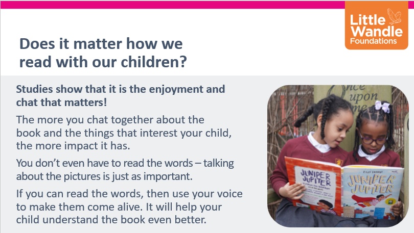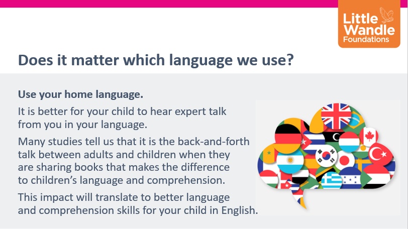 EYFS Statutory Educational Programme: The development of children’s spoken language underpins all seven areas of learning and development. Children’s back-and-forth interactions from an early age form the foundations for language and cognitive development. The number and quality of the conversations they have with adults and peers throughout the day in a language-rich environment is crucial. By commenting on what children are interested in or doing, and echoing back what they say with new vocabulary added, practitioners will build children’s language effectively.