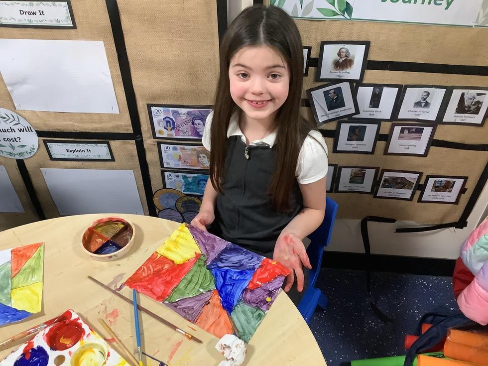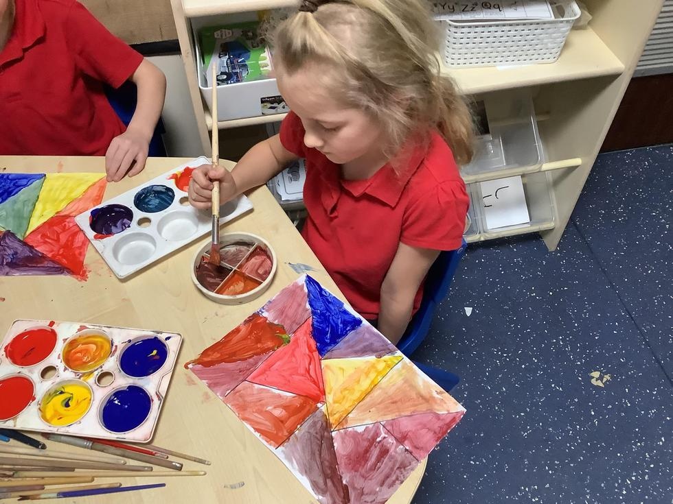 In Art, we are learning all about Pablo Picasso. This week we learnt that red, yellow and blue are primary colours. We also learnt that when primary colours are mixed they make secondary colours. The secondary colours are orange, green and purple.