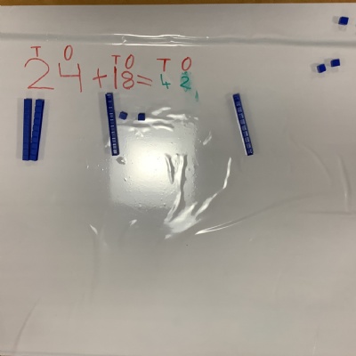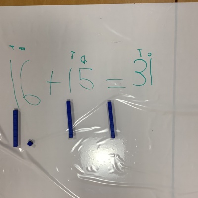 We have been adding two 2-digit numbers together in maths.