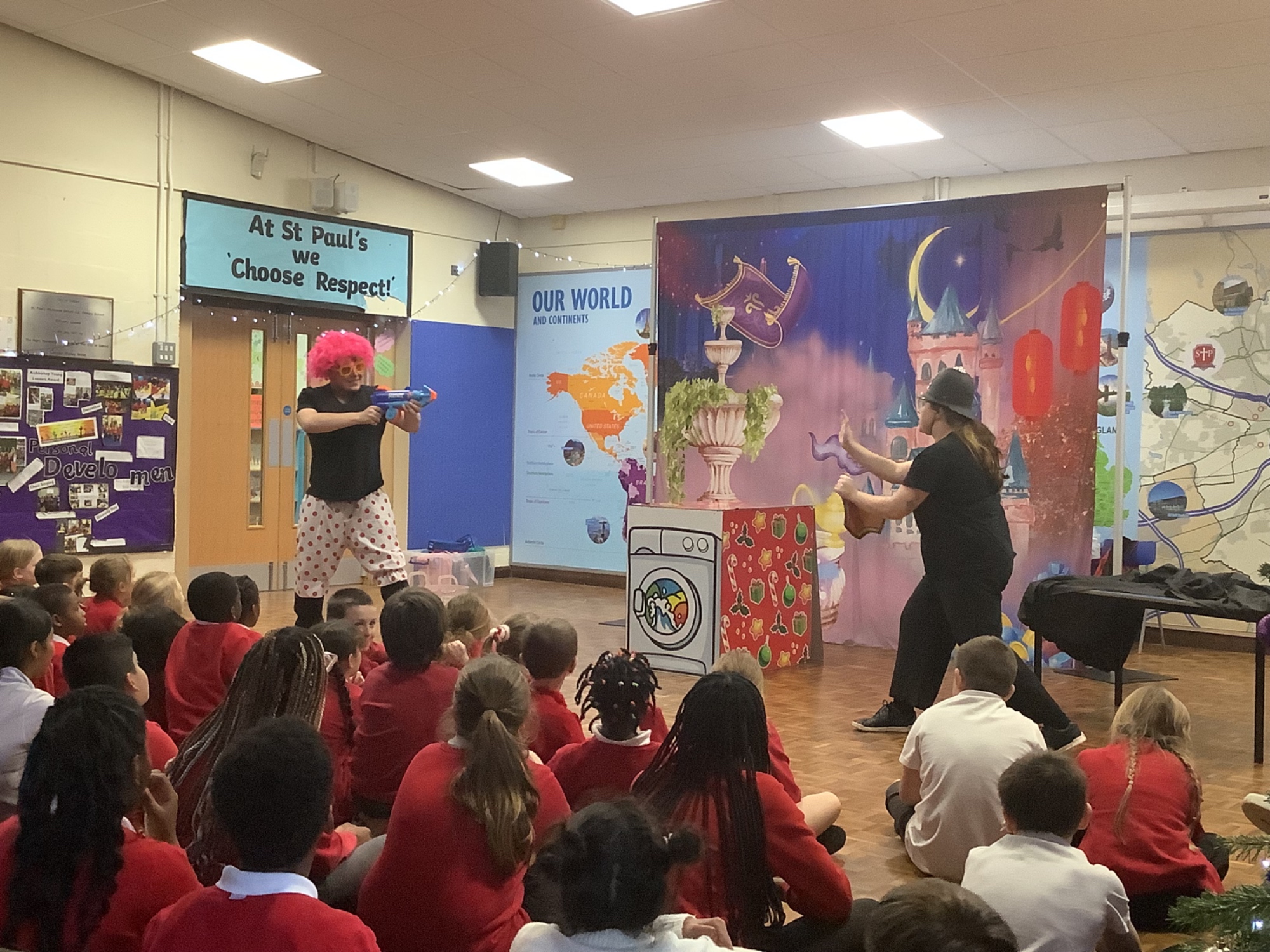 The children thoroughly enjoyed watching the pantomime that came to school. There were lots of laughs, shrieks, boos, hisses, cheers and excitement.