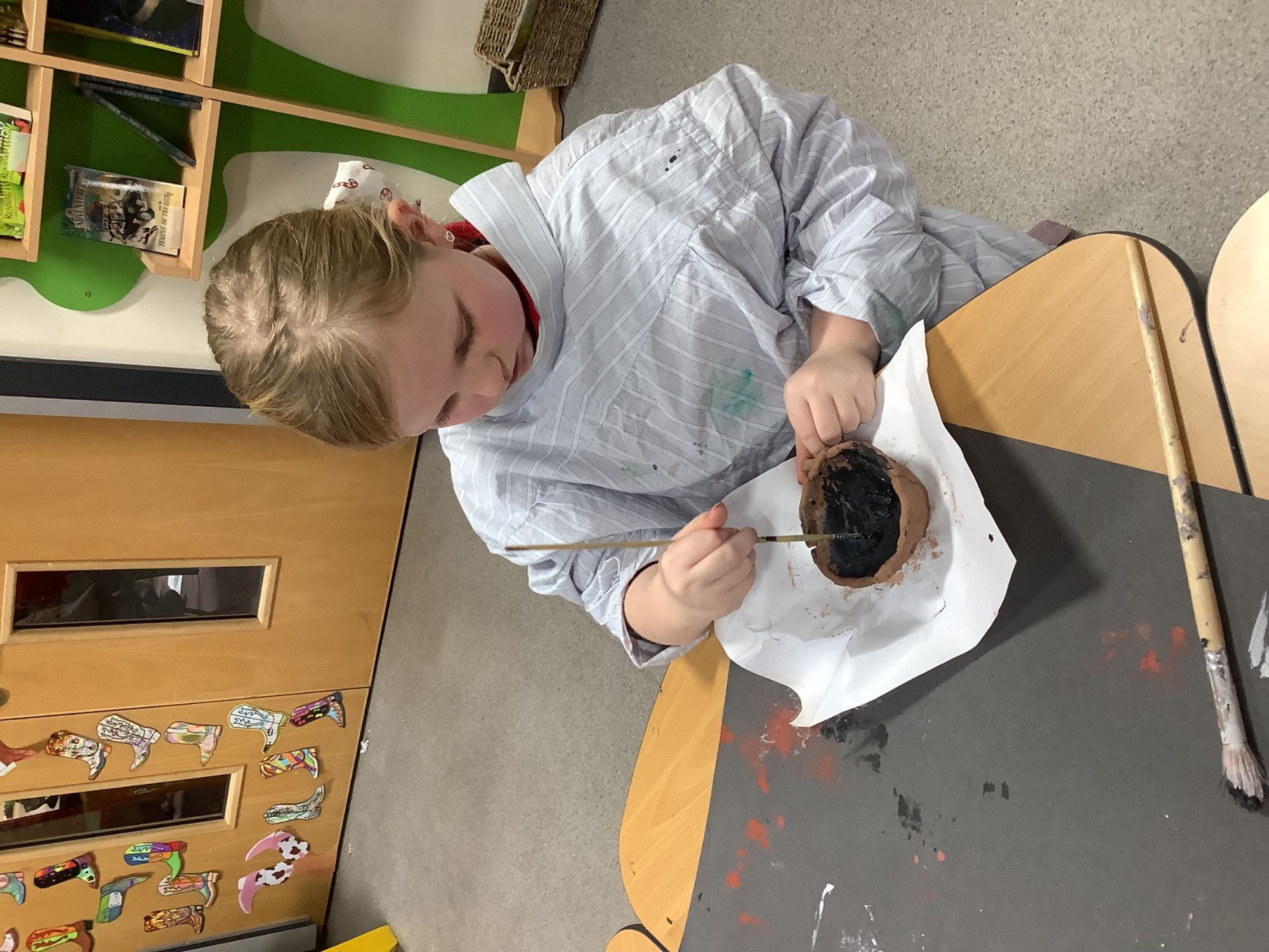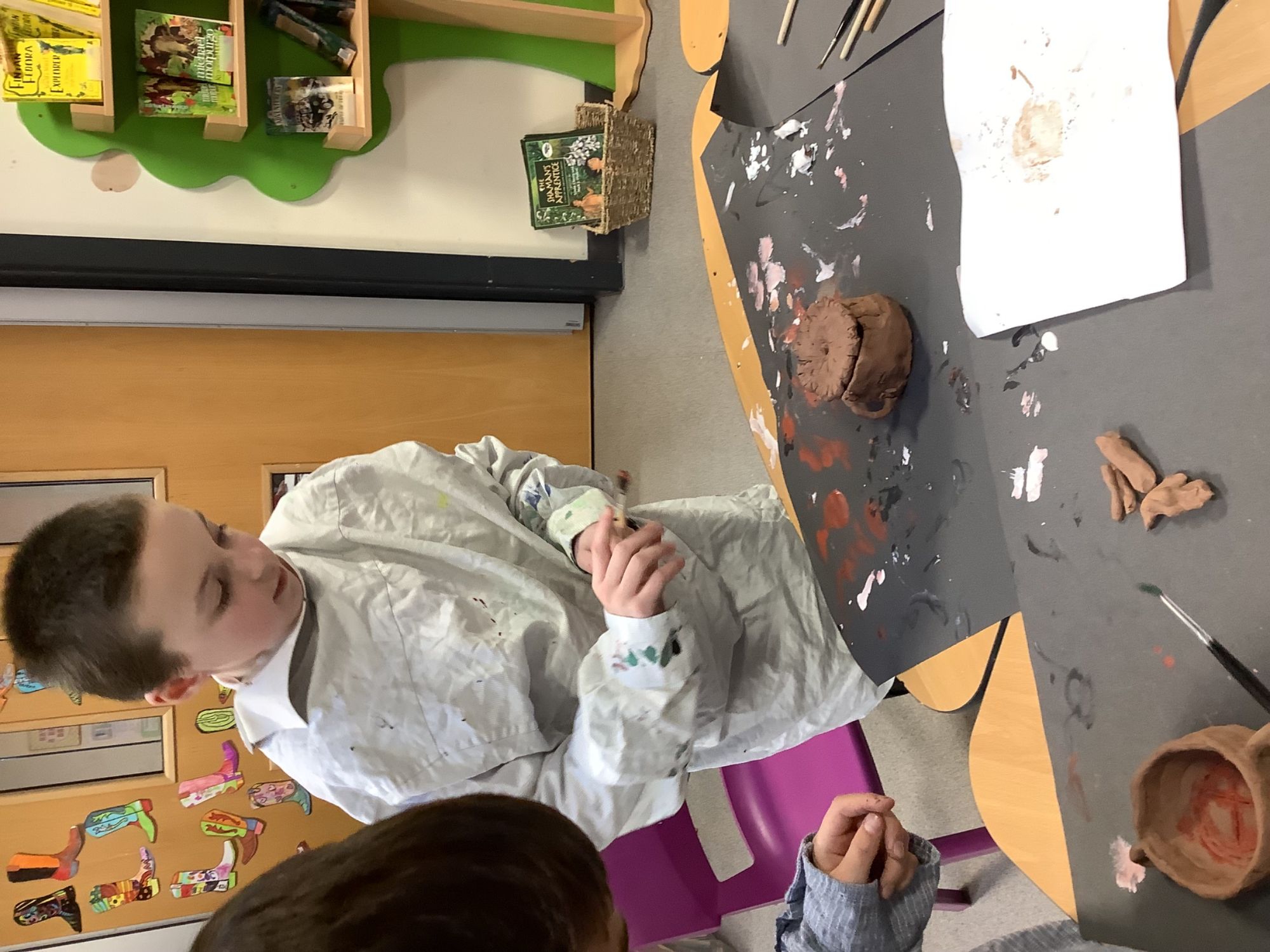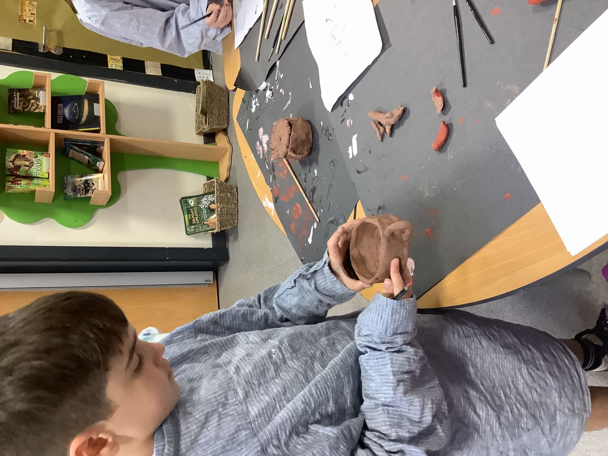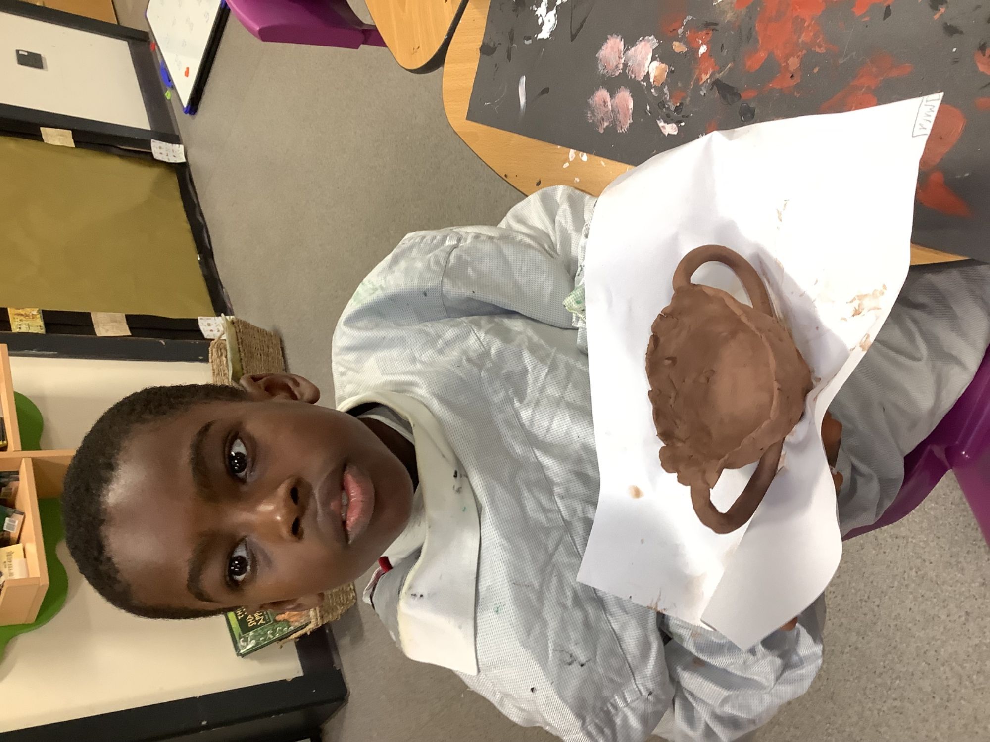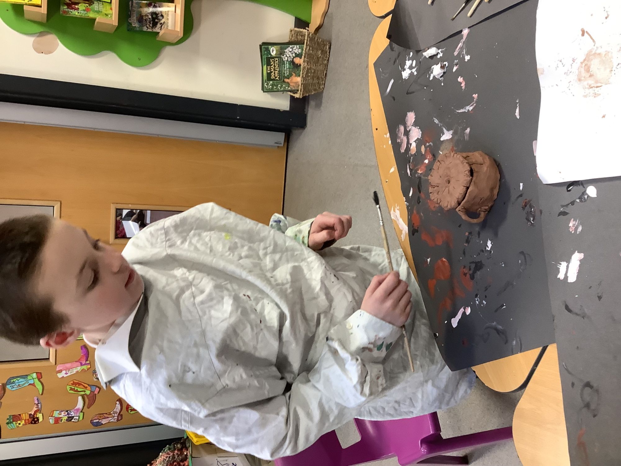 Year 4 have been planning, designing, creating their own Greek pots. It's been a lot of messy fun, but we've learnt how to plan a panel to carve into the wet clay, we've learnt how to use the pinch pot technique and the coil technique to mould our pots, and we have learnt how to paint our design onto the pot.