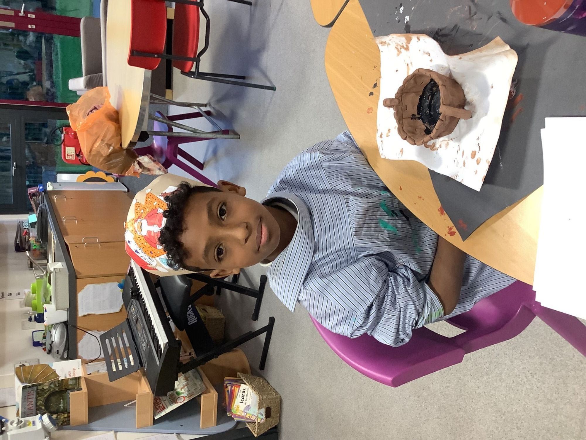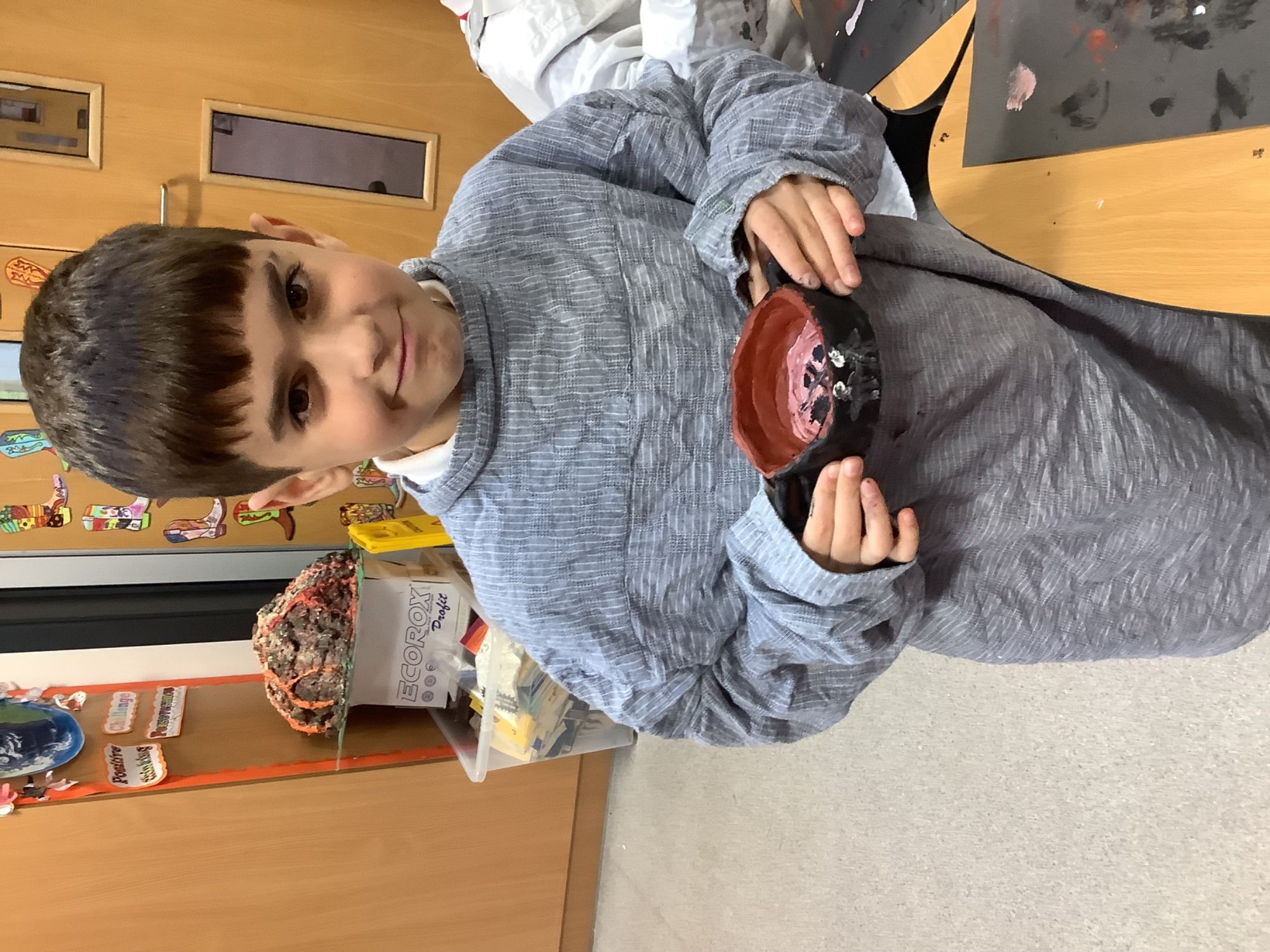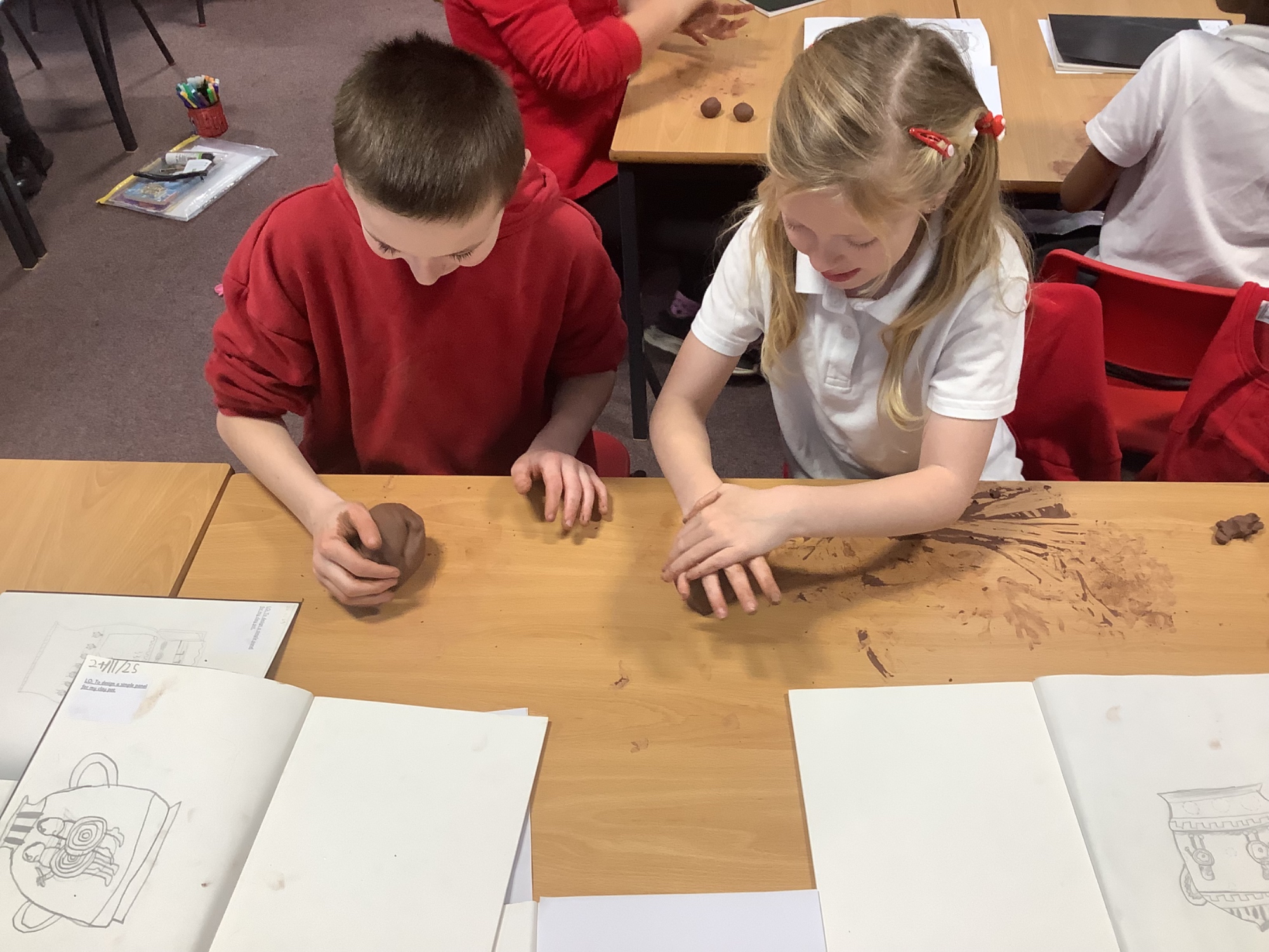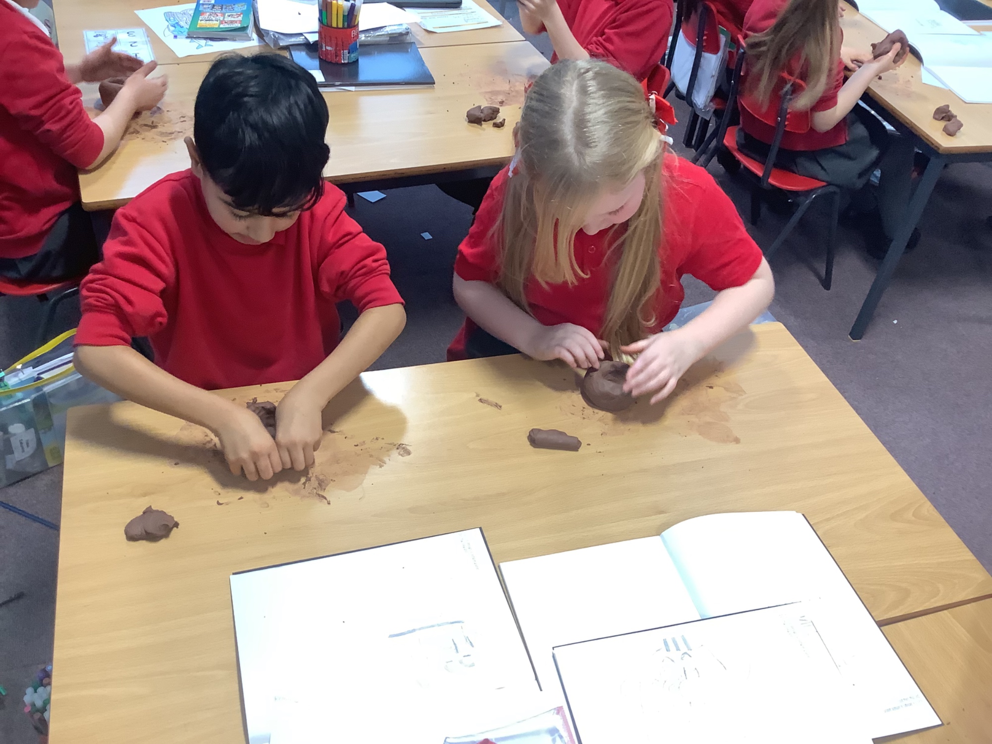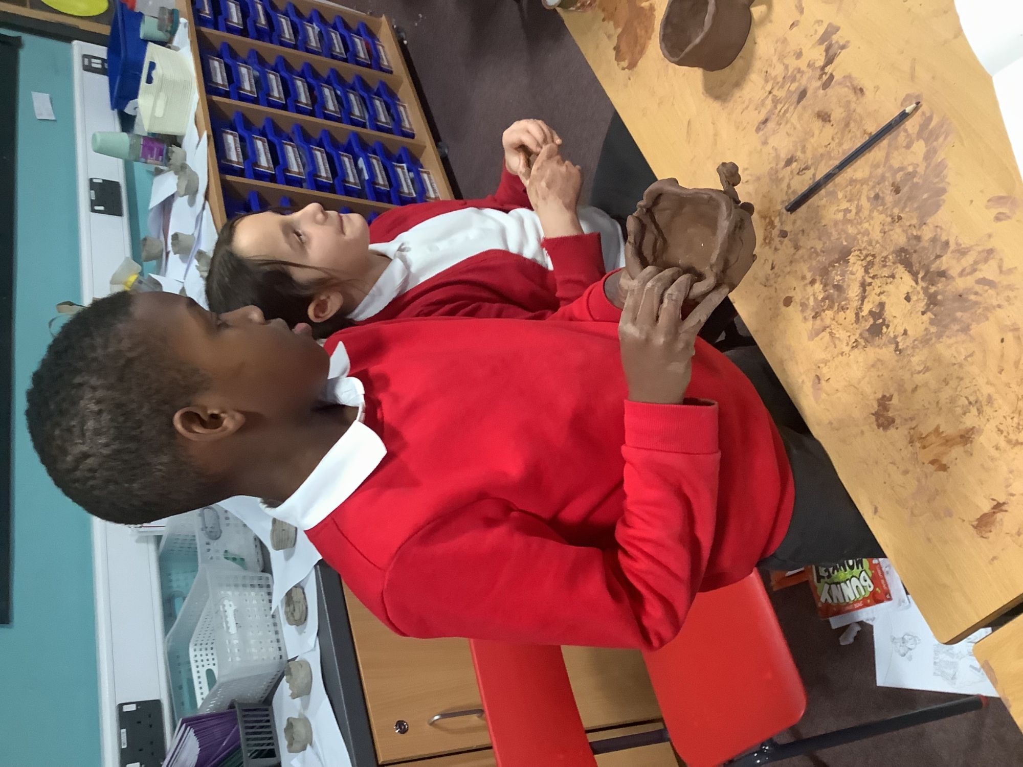Year 4 have been planning, designing, creating their own Greek pots. It's been a lot of messy fun, but we've learnt how to plan a panel to carve into the wet clay, we've learnt how to use the pinch pot technique and the coil technique to mould our pots, and we have learnt how to paint our design onto the pot.