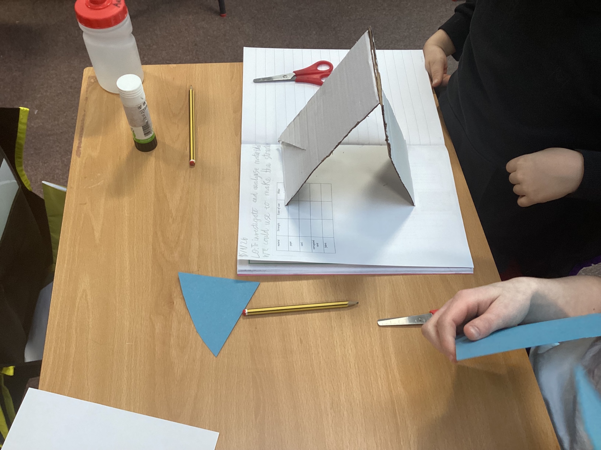 We had to make a structure using materials and decide which was the best one to use. We discovered that corrugated card was the strongest and the best to use. We found that fabric was too flimsy.