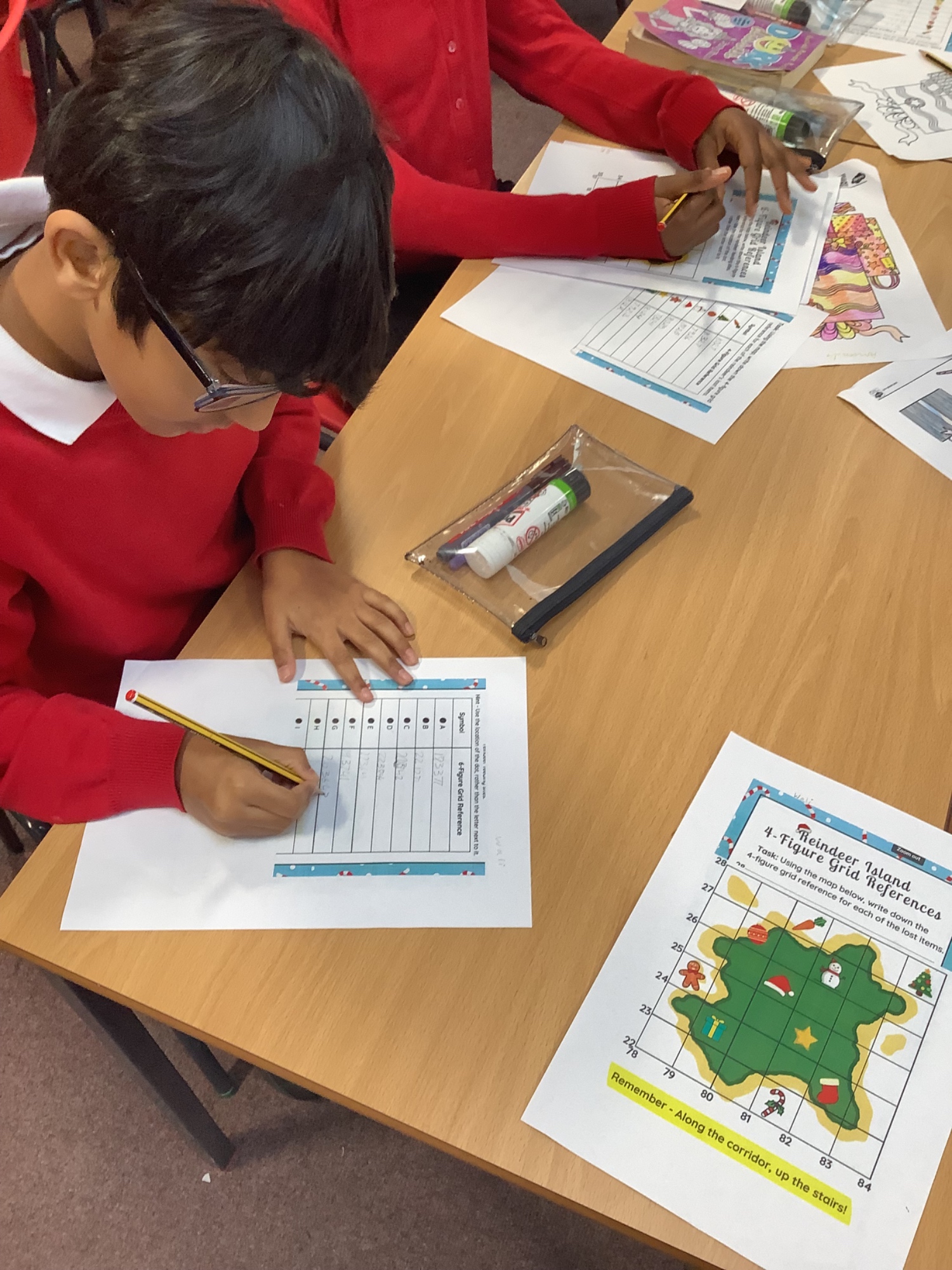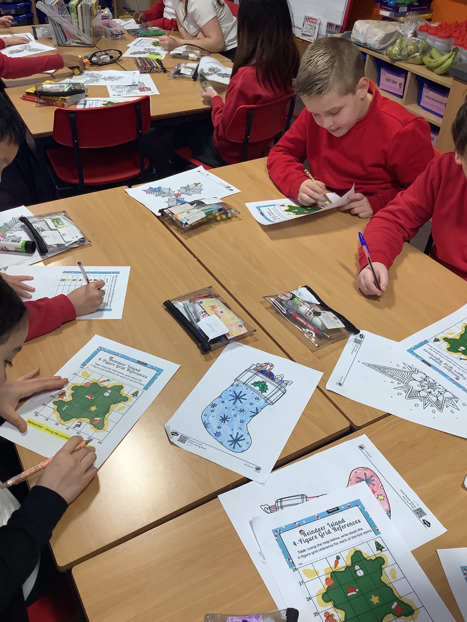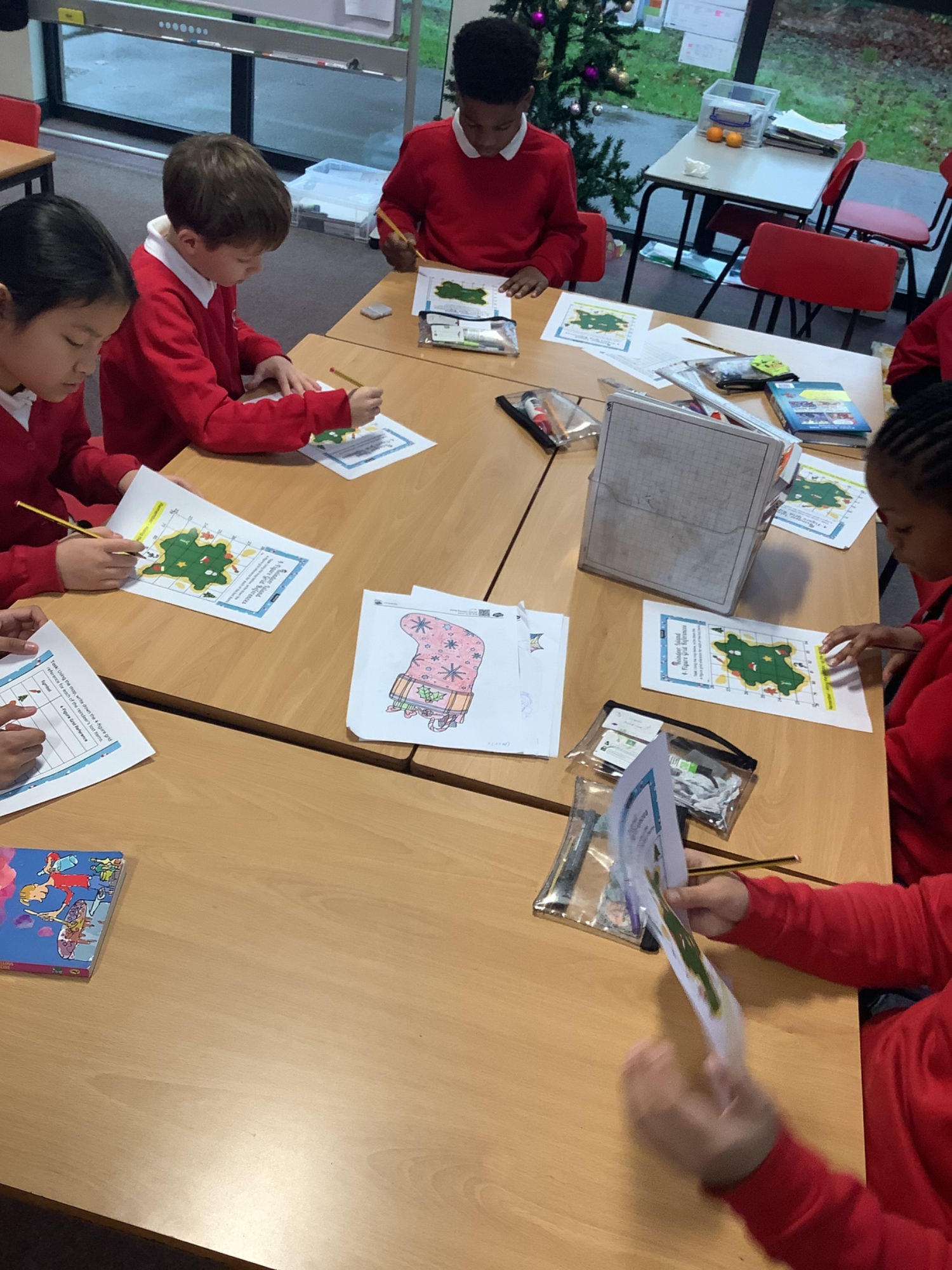 This week, Year 5 have been exploring geography by revisiting 4 and 6 figure grid references. The students had a great time using festive worksheets to search for various Christmas symbols on their maps. It was a fun way to learn and celebrate the season!