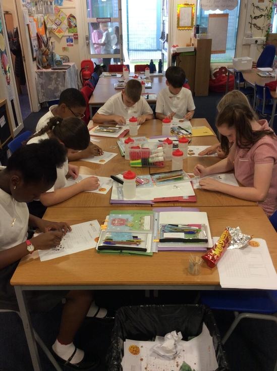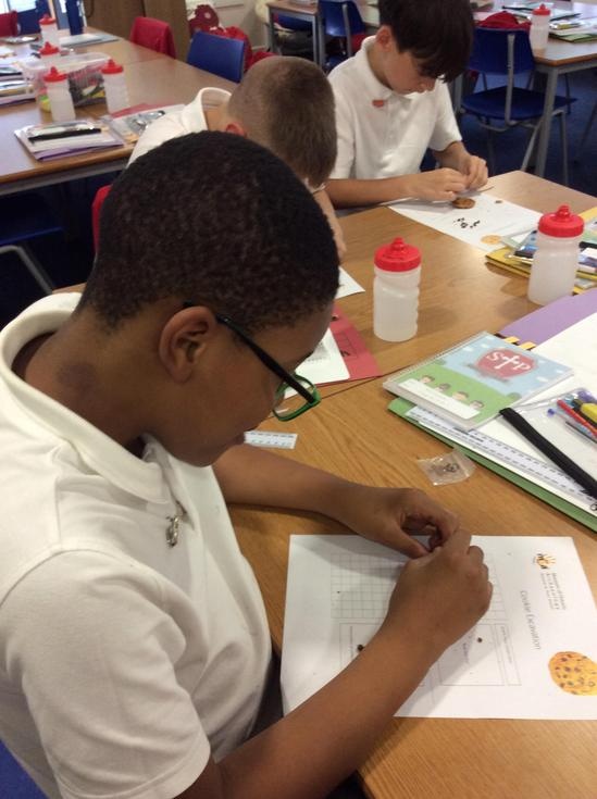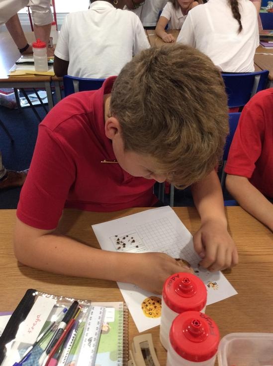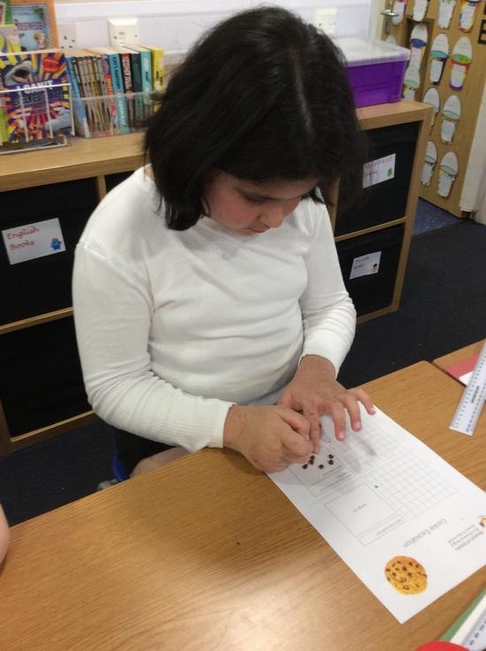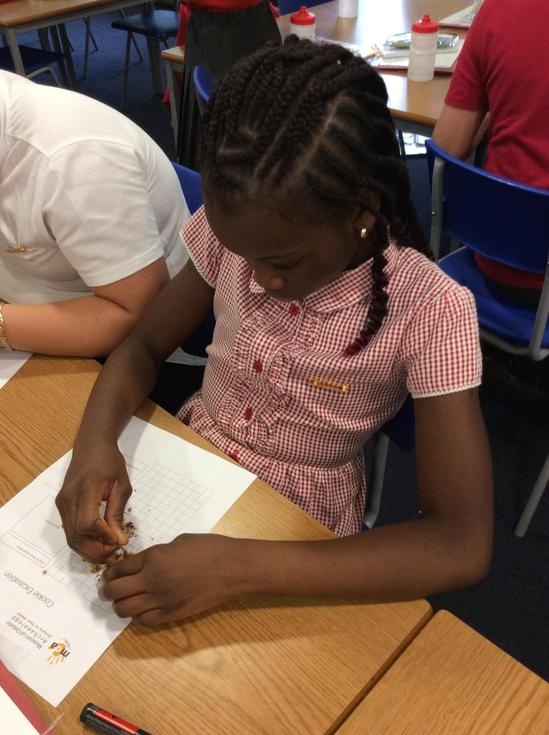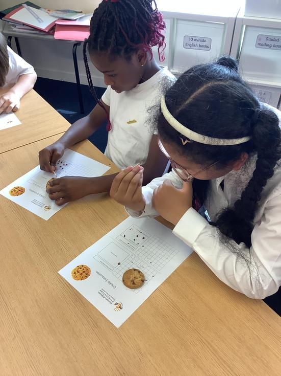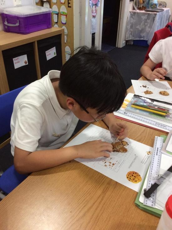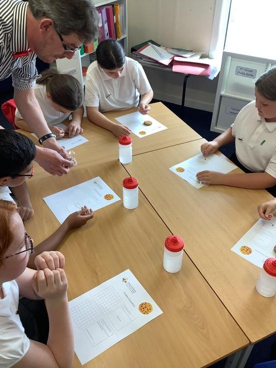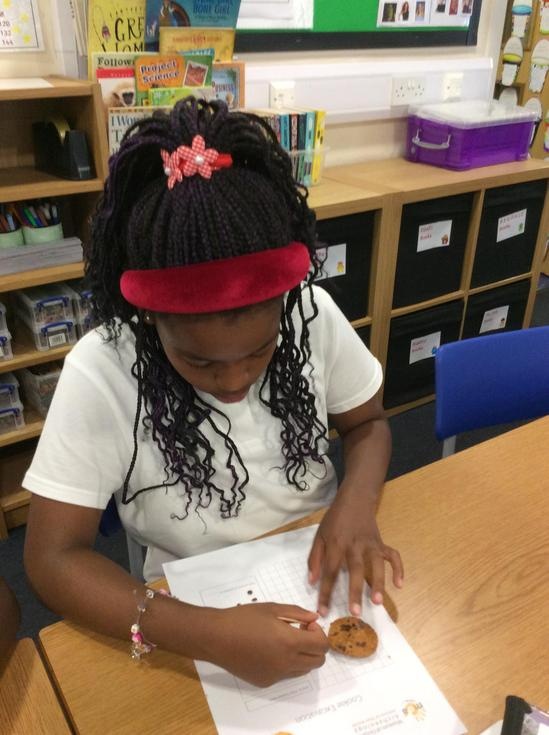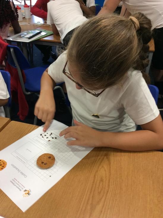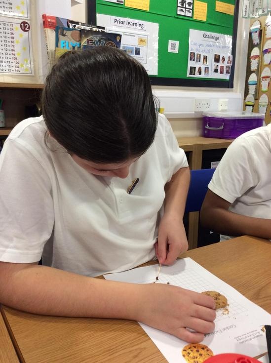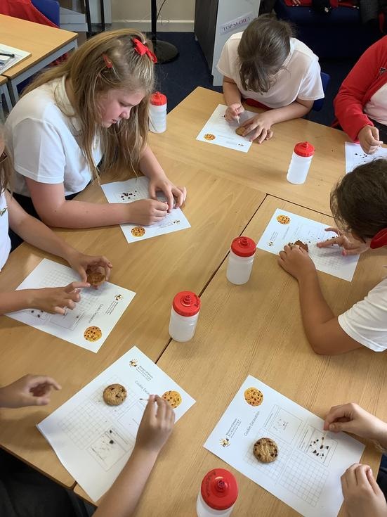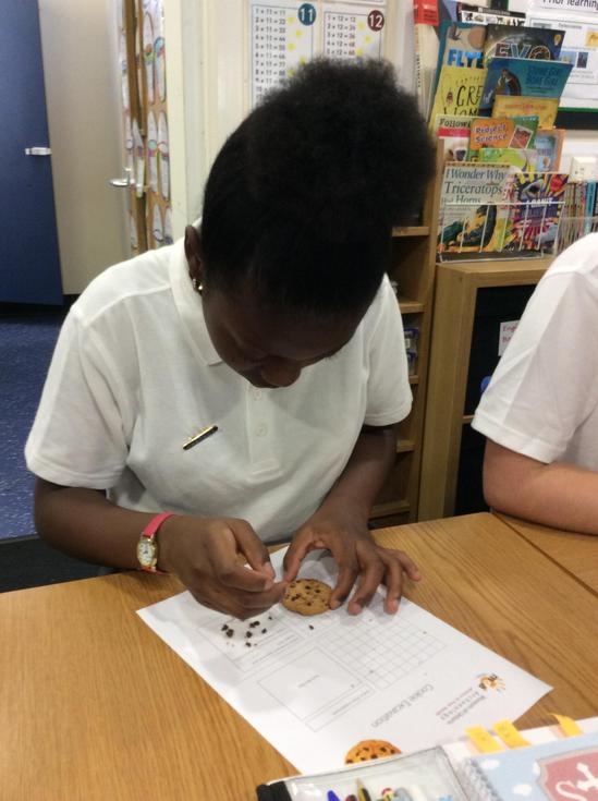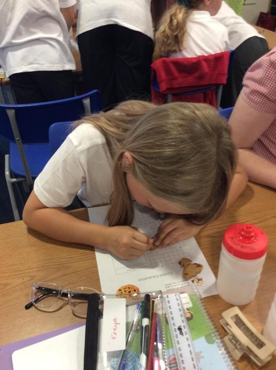 We practiced our paleontology skills by excavating choc chip cookies (stone) with cocktail sticks as a hammer, to uncover the choc chips (fossils).